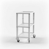 Представляет собой конструкцию из пластика белого цвета, сочетает малый вес с прочностью, устойчивостью и значительной грузоподъемностью. Состоит из пластиковых стоек и трех полок. Стеллаж установлен на четырех поворотных колесных опорах произведства КНР. Два колеса снабжены тормозами.
