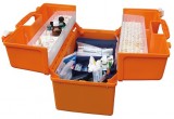 Серия УМСП-01-П и УМСП-1-Пм/2 представляет собой пластиковые саквояжи из высокопрочного АБС пластика, снабженные перегородками, вкладышем-ячейкой и ложементами под ампулы, обеспечивающими удобство размещения всего перечня медицинский изделий и лекарственных средств. Липкая аппликация с наименованиями лекарственных средств, поможет определить место каждому лекарству и без труда ориентироваться в ампулах.