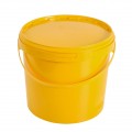 Ёмкость с дугообразной ручкой и маркировочной наклейкой. Цвет желтый. Основная крышка, закрывающаяся герметично.