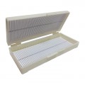 Предназначен для хранения микропрепаратов на предметных стеклах размером 75х25 мм, толщиной 1 мм. Имеет подложку из прессованной пробки, нумерованные ячейки и поля для записи. Изготовлен бокс-штатив из полистирола. Рабочий диапазон температур - от -30 до +60°С.