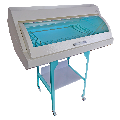 - Камера, благодаря конструктивным особенностям решетки, на которой размещается инструмент, обладает в 4 раза большей вместимостью по сравнению с полками и тумбочками с УФ лампами, позволяя проводить непрерывный смешанный прием на протяжении 24 часов