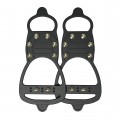 Стальные шипы - базовый, универсальный вариант комплектации противоскользящих накладок. Такие шипы плотно сидят в посадочных гнездах и хорошо держат на скользкой поверхности. Благодаря защитной гальванизации, стальные шипы в не поддаются ржавчине. В передней части подошвы в ледоходах расположено по 6 шипов. Еще по 2 шипа - в области пятки. Расположение шипов и шипы на носке и на пятке обеспечивает лучшее сцепление на льду. Сделаны из настоящей морозостойкой литьевой резины, прочной и эластичной. Они отлично тянутся практически на любой тип и размер обуви, хорошо держатся на ней и не рвутся даже под значительными нагрузками. Прямоугольное в сечении рифление ледоступов для обуви лучше, чем округлое, цепляет за шероховатости льда. Предусмотрены удобные язычки спереди и сзади.