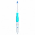 Это простое устройство для каждодневных процедур чистки зубов. Звуковая электрическая зубная щетка обладает малым весом, 23 грамма без батарейки, и компактными габаритами корпуса. Щетку удобно брать с собой в поездки, что связано не только с небольшими размерами, но и благодаря наличию специального защитного колпачка, изготовленного из прозрачного пластика, который закрывает щетину от попадания мусора и грязи. На ручке присутствует резиновая вставка голубого цвета, цель которой максимально оптимизировать процесс пользования, чтобы устройство не выскальзывало из влажных рук в момент чистки зубов. Работает от одной щелочной батарейки, которой хватает на 150 дней эксплуатации, ведь энергопотребление оборудования не превышает 0,26 Вт. Высокочастотные колебания звуковой щетки-22 000 движений в минуту обеспечивают быстрое смешение и перемещение зубной пасты и слюны приводят к образованию качественной однородной пены. Такая пена обладает замечательными чистящими свойствами и позволяет эффективно очищать зуб со всех сторон, включая труднодоступные места (бороздки, ямки, контактные поверхности зубов).
